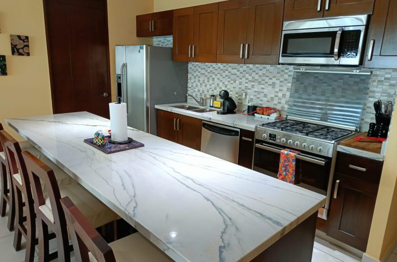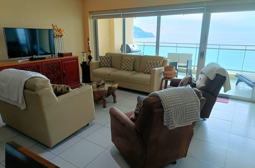 LAS GAVIAS GOLDEN SHORES $499,000 USD **Las Gavias Golden Shores** - Beautifully furnished 3-bedroom, 3-bathroom residence featuring an open-concept living and dining layout. The thoughtfully designed kitchen offers granite countertops and stainless steel appliances, seamlessly connecting to a spacious oceanfront terrace. Total area: 2,162 sq. ft.