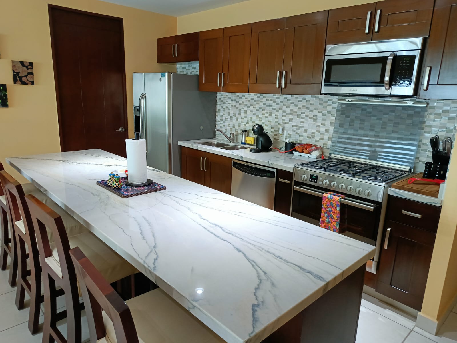 LAS GAVIAS GOLDEN SHORES $499,000 USD **Las Gavias Golden Shores** - Beautifully furnished 3-bedroom, 3-bathroom residence featuring an open-concept living and dining layout. The thoughtfully designed kitchen offers granite countertops and stainless steel appliances, seamlessly connecting to a spacious oceanfront terrace. Total area: 2,162 sq. ft.